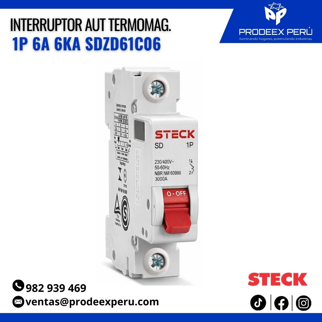Interruptor Termomagnético Steck 1P 6A 230V Curva C 6kA SDZD61C06