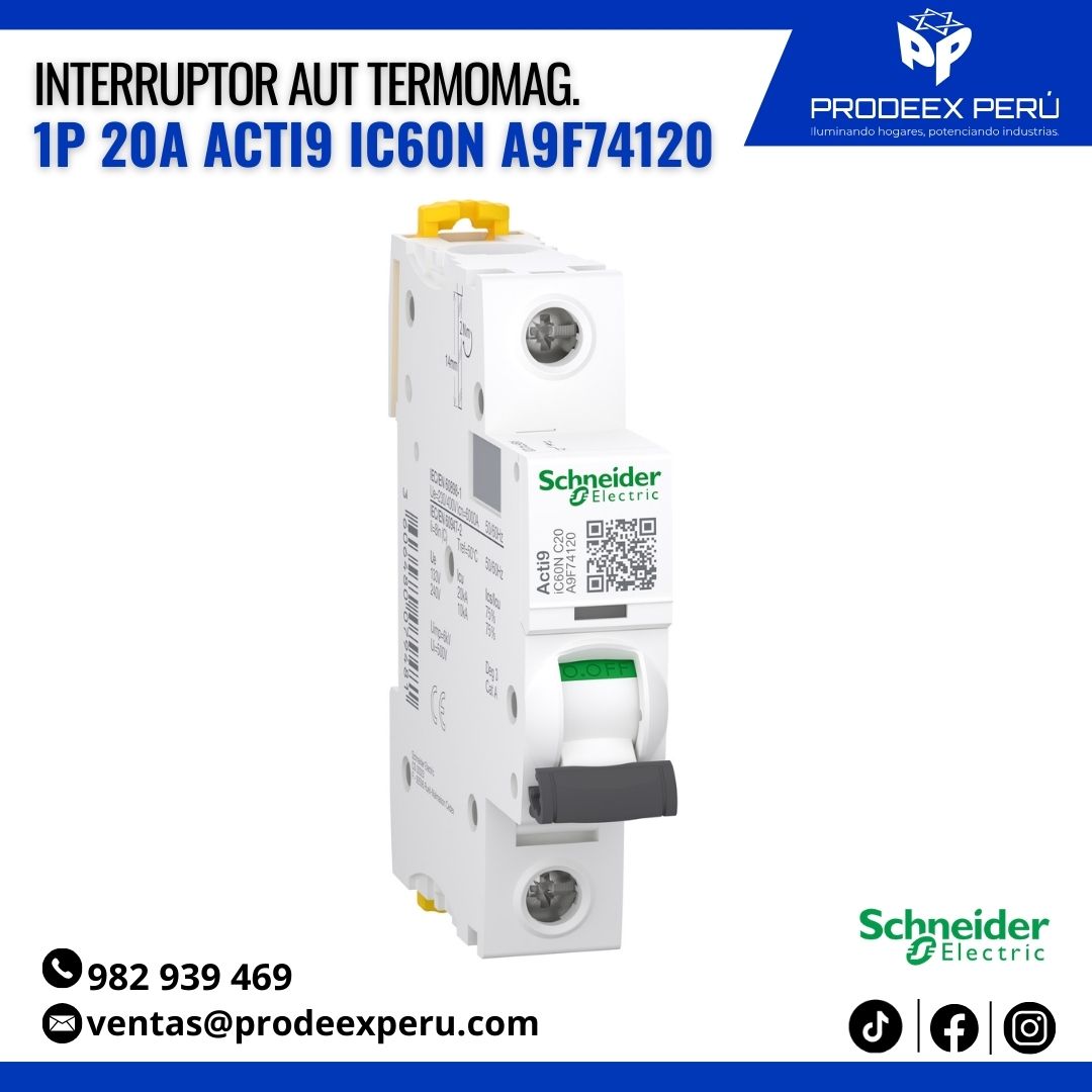 Llave térmica Acti9 iC60N de Schneider Electric | 1P 20A Curva C 6 kA A9F74120