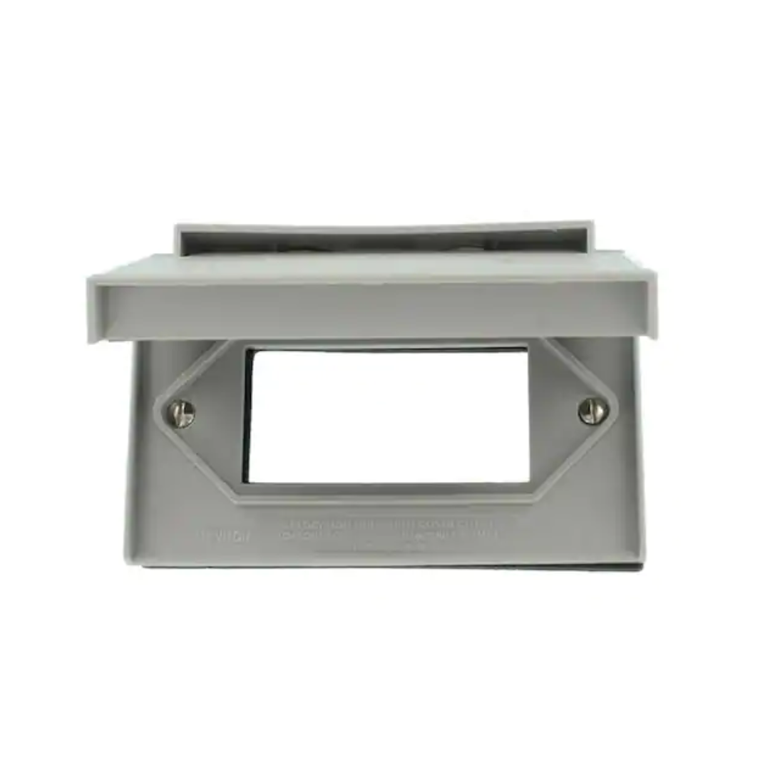 Gracias a su montaje horizontal y su sistema de cierre automático, esta placa proporciona un sellado hermético, cumpliendo con las normativas UL y CSA. Su acabado en color gris neutro se integra fácilmente a cualquier entorno. Ideal para conexiones seguras de herramientas eléctricas, iluminación decorativa, bombas de agua y sistemas de riego al aire libre.