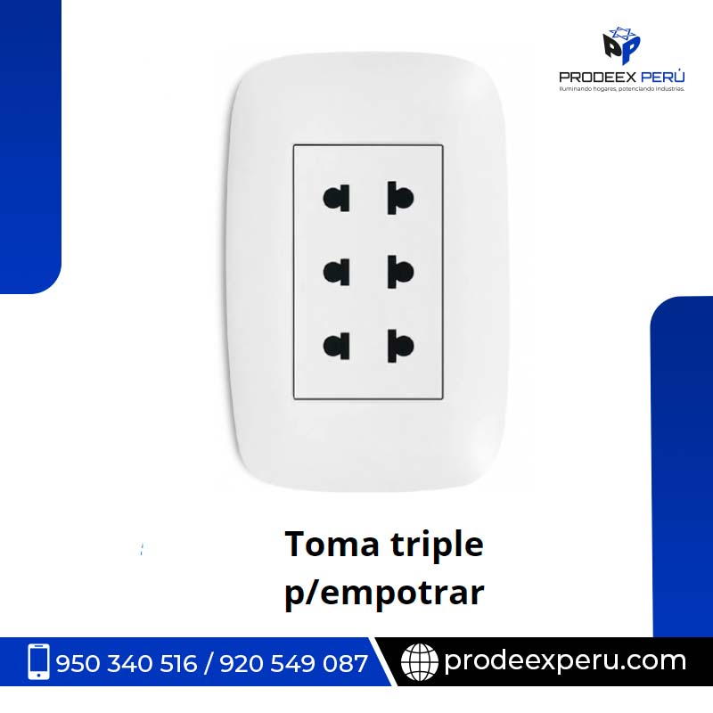 En Prodeex Perú, ofrecemos una variedad de tomacorrientes triples para empotrar, fabricados con materiales de alta calidad y diseñados para cumplir con los estándares de seguridad eléctrica. Estos tomacorrientes son duraderos y fáciles de instalar, garantizando una alimentación eléctrica confiable en todo momento.