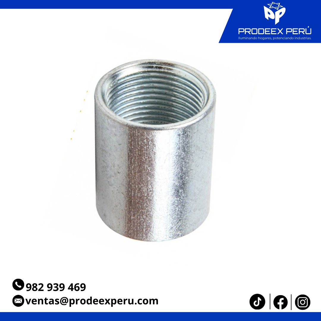 La Unión IMC de acero galvanizado es el accesorio ideal para unir tubos metálicos tipo IMC en canalizaciones eléctricas. Su diseño permite una conexión segura, continua y resistente, cumpliendo con los más altos estándares de calidad y seguridad. Fabricada bajo normas UL 1242, ANSI C80.6 y UL 514B, es ampliamente utilizada en instalaciones eléctricas industriales, comerciales y hospitalarias.